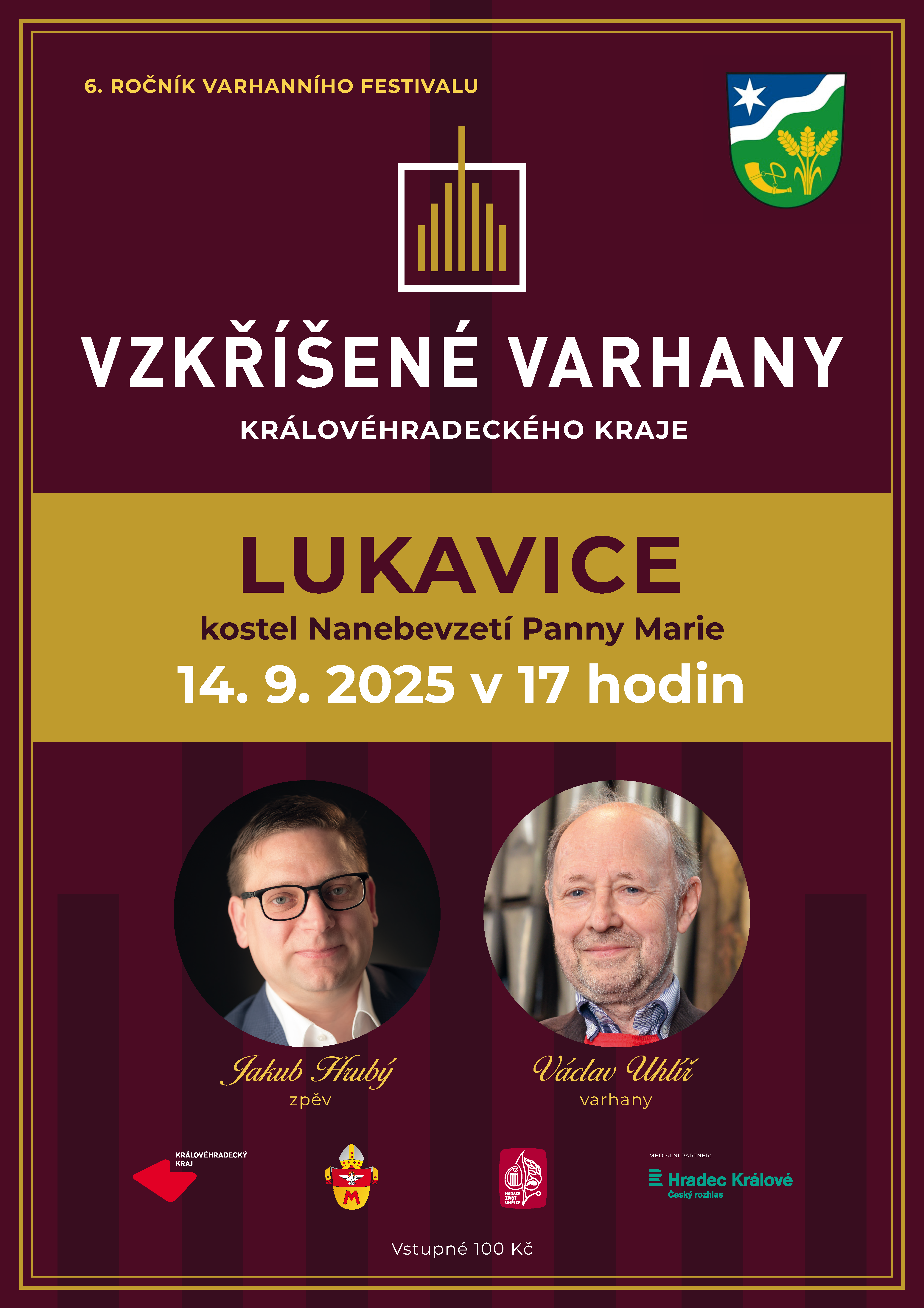 Druhý koncert 6. ročníku festivalu Vzkříšené varhany Lukavice kostel Nanebevzetí Panny Marie neděle 14. září 2025 v 17 hodin Účinkují: VÁCLAV UHLÍŘ – VARHANY JAKUB HRUBÝ – ZPĚV Program koncertu: Henry Purcell (1659–1695): Trumpet Tune and Air Jan Dismas Zelenka (1679–1745): Recordare Domine, testamenti tui Jiří Ignác Linek (1725–1791): Preambulum C dur František Xaver Brixi […]