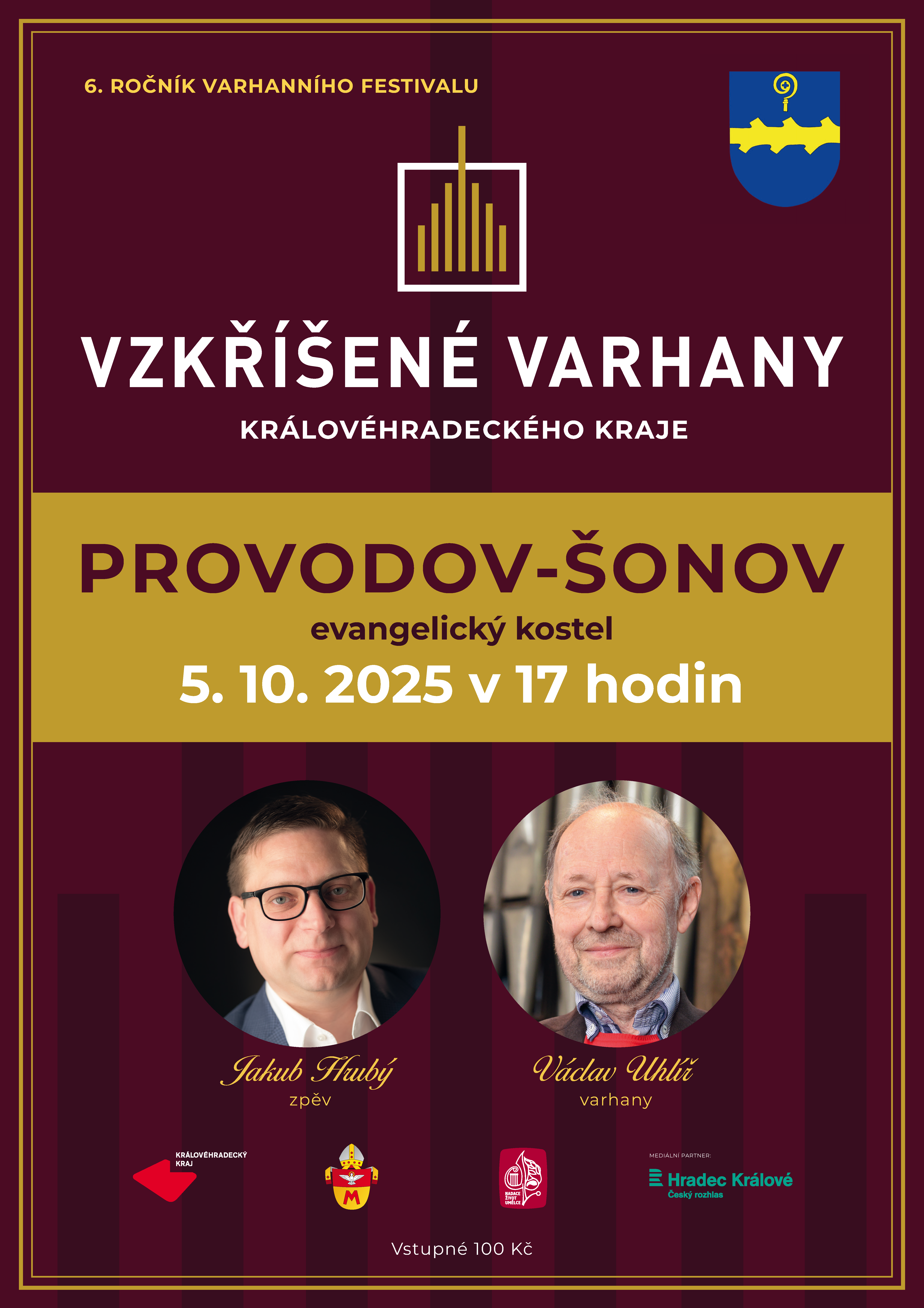 Druhý koncert 6. ročníku festivalu Vzkříšené varhany Lukavice kostel Nanebevzetí Panny Marie neděle 14. září 2025 v 17 hodin Účinkují: VÁCLAV UHLÍŘ – VARHANY JAKUB HRUBÝ – ZPĚV Program koncertu: Henry Purcell (1659–1695): Trumpet Tune and Air Jan Dismas Zelenka (1679–1745): Recordare Domine, testamenti tui Jiří Ignác Linek (1725–1791): Preambulum C dur František Xaver Brixi […]